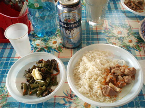 14:05 ベースキャンプを出発し、らくだ山ハイキングへ。 ↓らくだ山 ![]() ピンクの花はヤナギラン ↓鞍部まで登る ![]() ↓アバチャ山は雲の中 ![]() ↑レスキューキャビン 14:45−55 レスキューキャビン(小休止) ![]() レスキューキャビンを見下ろす 15:25−45 らくだ山鞍部(大休止) ![]() らくだ山鞍部より望む ![]() らくだ山の下り 16:40 ベースキャンプ着。 18:30 夕食。 缶ビールは2種類売っていた。(アルコール度数3%=60ルーブル、7%=70ルーブル) いつもは涼しい場所らしく、常温保管なので、ヌルいビールを飲むことに(^^; ![]() 21:45 消灯。 |