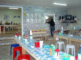 11:45−55 トイレ休憩。 ![]() トイレ休憩ポイントより望むカリャーク山(3456m) 12:30 アバチャ山ベースキャンプ着。 ![]() ↑水色は、食堂棟 ![]() 8人用キャビン(4人部屋×2) キャビン内部は、入口から左右に部屋が別れ、各部屋に二段ベットが2つ配置されている。 I御夫妻に下段を譲り、私達は上段を使う。思っていたよりきれいだ。 シュラフとマットを持参したが、ベットには両方共備えられていた。 トイレはキャンプの外れに、洗面所は、食堂棟の裏手にある。 ![]() マーモット君のお出迎え♪(^^) 13:00 昼食。