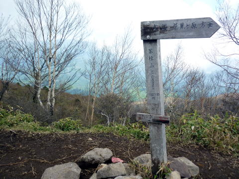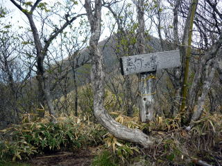 土曜日の百名山である。進むにつれ多くの休憩しているパーティーに出会う。 ひと登りで稜線に出ると、駒ヶ岳までは緩やかな道だ。 残念ながら雲が厚く、東側の展望は望めない。 ↓小沼 ![]() 尾根道を振り返る 11:00−05 駒ヶ岳1685m(小休止・オレンジジュース)