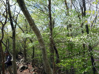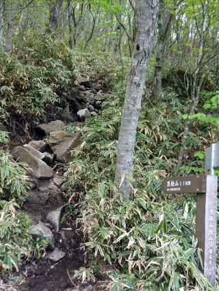![]() ![]() 大沼を見下ろす 12:35 黒檜山登山口通過。車道を歩き駐車場へ。 ![]() 車道から、いきなり急な登山道 12:50 大洞P着。 |