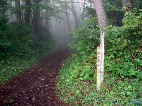 一本杉登山口P 8:30〜9:40 姫神山山頂 9:50〜こわ坂コース〜11:00 登山口P 本日も楽々ハイキング。それをいいことに前夜は貸切のキャンプ場で酒盛りに興じて しまったので、7:00起床(^^; テントの外は一面の朝靄に包まれていた。 ![]() 前夜暗くなって(18:15)到着したせいもあり、今朝改めて周辺の様子を伺いがてら の軽い散策。 ![]() キャンプ場の炊事棟 キャンプ場は、上側(登山口)第二駐車場と下側の第一駐車場の間に位置しており 炊事棟がなければ、暗かったせいもあるが判りにくい。(通年無料か?) パンとコーヒーの朝食をとりテントを撤収&不要な物をレンタカーに置いてゆく。 二百名山でもある姫神山だが、広い駐車場は車もまばらである。 8:30 登山口出発。 ↓きれいなトイレ棟 ![]() ![]() 8:40 小さな看板に導かれ、登山道を右脇に少し入ったところに立ち寄る。 そこには登山口の名前にも冠されている一本杉があった。 ![]() 一本杉を見上げる 地図上には一本杉清水という水場の表記もあるが、細い流れの所には飲料水には 適さないの表示があった(^^; 本道に戻り、やや急登の道を行く。 8:50 五合目通過。 先ほどから地元中学生の団体さんの元気組数人と、抜きつ抜かれつ進む。 駐車場にあったバスに貼ってあった紙によると、吹奏楽部の行事のようだ。 スニーカーにジャージの装備&裾はをドロドロ状態であるが、若さがはじけ元気いっ ぱい(^^)。ターボで登りゼイゼイし、ターボで登りゼイゼイしを繰り返している(^^)。 9割方の生徒は、弱音を吐きながらのだらだら歩き。 ハイジも元をたどれば間違いなく、その頃は弱音組だっただろう(^^; 9:10 八合目通過。 ターボ&ゼイゼイ組が、小休止を繰り返しているのに対し、オバ&オジ組の我らは いつものように淡々と進む。 彼らからすると、我らは保護者世代だものね〜(^^; 程なくまたターボ組に抜かれ、その後から大汗かきかき引率のリーダーらしき先生が 『うるさくてすみません〜』といいながら登って行った。先生も大変だぁ〜。 山頂直下とおぼしき手前で、小さな看板現る。 左:土コース、右:岩コースとあるので、岩コースを行く。 先行していたターボ組生徒数名が、岩岩コースの中で立ち往生している。 引率の先生は土コースへ行かれたようで姿が見えない。 どうやらルートが見つけられずにいるようだ。 ハイジ:『おじさん(ちー隊長)の後について行ったらいいよ〜♪』と声をかける。 男女交えた数名の生徒は素直に従い、ワイワイしながら連なっていった(^^) 9:40 姫神山頂(1124m)着。 ![]() 岩手山と早池峰に挟まれた独立峰でもあるので、本来ならば見晴らしはいいはずで あるが、本日は気温も高く生憎遠景は望めない。 ![]() 城内コース方面の麓を望む 9:50 山頂出発。来た道を戻らず、周回できるこわ坂コースを下る。 こわ坂というネーミングが何に由来するものかわからないが、歩いてみると特に 頂上直下は段差の大きい鬼下りの道であった(^^;(※ルートは明瞭) 山頂にいた多くの人が、このルートを選ばなかったと思われる。 傾斜が緩んだあたりからは山の幸、両脇キノコの道を行く。 ![]() おいしそーだけど食べられるのかなぁ〜?(^^) 10:35 林道出合通過。 アスファルトの道を行く。途中山栗が落ちていたので手のひら分拾う。 駐車場へ着くまでに1つ、ちー隊長がきれいに剥いてくれて、二人で半分ずつ味わう。 ほんのり甘くていい歯ざわりで美味しかった♪(ありがとう 11:00 駐車場着。温泉により帰路に着く。 盛岡へ向かう車窓から、美しく裾野をひく姫神山が見えた(^^)v |