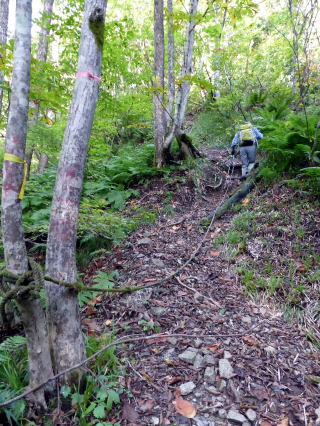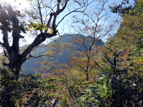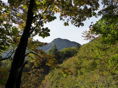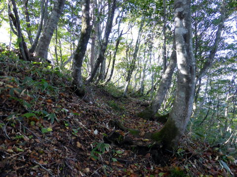 紅葉にはまだ早かった荒海山は、山頂以外はほぼ展望のない樹林帯の奥深い山だ。 登山道は概ね薄暗く、山頂で展望を得られないと・・・(> <;) 場所柄熊を心配していたが、(林道も含め)熊の糞や、木の幹への爪跡などは見られな かった。 |