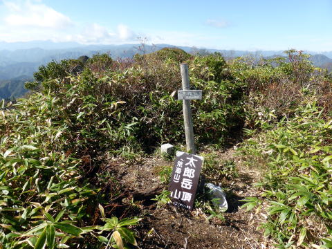 9:50 荒海山(太郎岳)着。大休止(パン) 栃木&福島県境に位置する荒海山は、栃木県側では太郎岳と呼ばれているそうだ。
