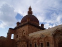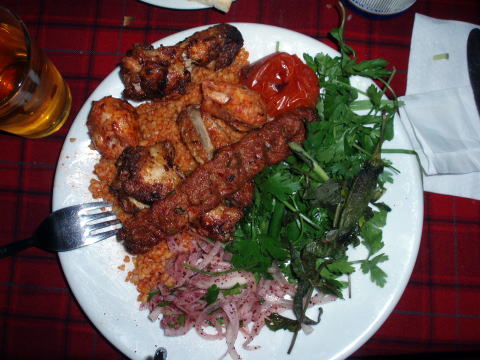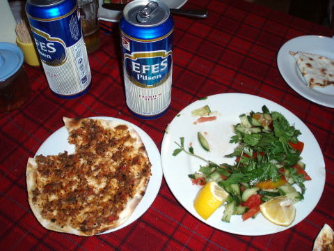 イスタンブール 8:20〜10:20 ワン空港 10:55〜着後専用車にて移動〜14:50 ドゥバヤジット・イスファハンホテル着。15:20〜市内観光へ。 5:00起床〜5:30朝食〜6:30ホテル出発〜イスタンブール空港へ 空港にて、一人一万円ずつ両替する。(1トルコリラYTL=約100円弱) ワン空港にて、山岳ガイド:ハサン(40才)、サブガイド:サーディンティン(30代男性)、 現地係員:レイハン(30代女性)、テントキーパー:アイクット(30代男性)と合流。 10:55 ワン空港出発。専用車にて山麓の町・ドゥバヤジットへ。 途中、眺めのよいワン湖の畔に停車し、景色を楽しむ♪ ![]() ![]() ワン湖より望むトルコ第二の高峰シュプハン山(4058m) 12:15 ローカルレストラン着。対岸の滝を眺めながらの昼食。 メインディッシュをチキン、フィッシュ、ラムから選べるが、日本人メンバーは皆ラムを敬遠。 私達もチキンとフィッシュを頼む。そしてEFESビールも♪(4リラ、水500ml/0.5リラ) 食事はツアー代金に含まれているが、飲み物は各自払いである。 ドライバーさんを含め皆でテーブルを囲む。ガイドさん達は皆ラムを食べている。 好奇心を抑えきれなくなったハイジは、ツアーリーダM氏に頼み、レイハンのラムを少し いただいたのだが、これがスパイシーながらもとっても美味しい! はじめからチャレン ジャーになるべきであった(^^) 13:30 レストラン出発。 ![]() 車窓より望むアララット山(5137m)と小アララット山(3896m) 14:50 イスファハンホテル着。改装中とはいえ、事前にリーダーから期待しないでくだ さいの言通りだ(^^; シャワーのお湯も出るし、山小屋に泊まることを思えば問題ない。 薄暗いロビーには、アララット山の登頂写真等が沢山飾られており、観光客向けというよ りも、主にアララット山に登る方々に利用されているようだ。 15:20 ホテル出発。専用車にて市内観光へ。 15:50 方舟の丘(勝手に命名)着。研究者を案内した地主さんが建てた小さな博物館 がある。ここは観光客の立寄り先になっており、記帳ノートが置かれ、ページを捲ると 日本人の名前も見られた。記念に我らもしっかり記帳する(^^) 16:20 方舟の丘出発。 17:05 イサク・パシャ宮殿着(見学)。 閉館間際なので見学客の少ない中、先生に引率されたイスラムの少女達(小学生?) 一行に出会う。低学年から高学年の子まで、先生の説明を聞くよりも、多分初めて見た 日本人が珍しいらしく、美しく澄んだ瞳で見つめられてしまった。高学年の子の中には、 ハニカミながら英語で話しかけてくる子も。 17:55 宮殿出発。 ホテルへ帰り際に、街のスーパーで飲料水を買う(1.5L@0.5リラ、500ml@0.25リラ) 18:20 ホテル着。 シャワーを浴び、19:45再びロビーに集合し、徒歩にてレストランへ。(夕食) ![]() トルコ風ピザ&キュウリとトマト、香草のサラダ ![]() ピラフにトッピングされたチキン&ラムのグリル 21:55 ホテル前の売店にて、部屋飲みビール(EFES500ml@2.5リラ)2本買う。 お気楽観光気分もここまで。明日からは山歩きだ。山中で使う荷物とホテルへ預ける 荷物を作る。 23:00 消灯。 |