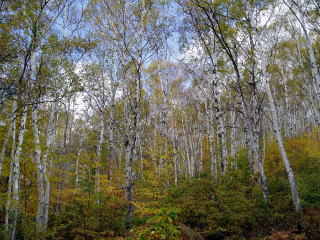 菅平牧場P 6:50発〜根子岳8:20〜四阿山9:45〜中四阿10:20〜車道出合11:30 〜菅平牧場P 11:35着 昨夜のビールが効きすぎて6時出発の予定が、ハイジの寝坊で遅れてしまった(^^; 放牧されている牛を見ながら、草紅葉に染まる牧場脇の登山道を行く。 振返ると後立山連峰や頸城の山々の連なりが望めるはずなのだが、あいにくの曇 り空で見えない。 根子岳を過ぎ四阿山へのミニ縦走。 笹原の中の美しい道を行く。 しか〜し、前日までの大雨のせいで登山道はドロドロ&ぐちゃぐちゃで歩きづらい。 ![]() 9:40 四阿山頂着。 あいかわらず曇っており、展望が得られないので早々に下山する。 中四阿〜小四阿と、眼下に菅平高原が一望できる見晴らしの良い尾根道を行く。 このあたりからは木々の色づき具合も良く、陽も射してきて、この山&コースを 選んだ甲斐があった(^^)v ![]() 白い幹と黄葉のコントラストが美しいダケカンバ林を抜け、どんどん下る。 車道出合までの道は、存分に秋を感じられる散歩道だ。 ![]() 11:35 駐車場着。 日帰りなので荷が軽いせいか、予定より1時間以上も早く着いてしまった。 町営真田温泉へ寄り、帰路に就く。 |