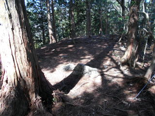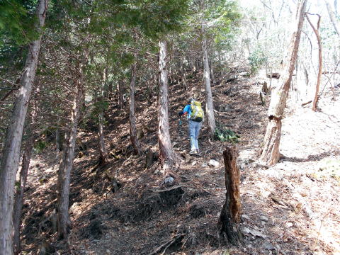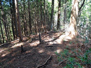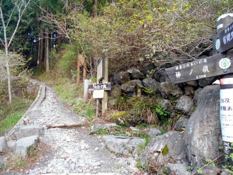 ![]() 大ヨケの頭付近より望む棒ノ嶺(左) 14:15 小ヨケノ頭(標識なし)通過。 このピークへの記憶がなかったが、前回・逆行時は巻き道を通ったのだった。 14:20 中登坂分岐通過。 ![]() ![]() 14:26 樹間から名栗湖が見えた♪ 14:45 金毘羅神社跡通過。 ![]() ここからは薄暗い杉林の中を行く。 右手に民家が見えてくると、ゴールは近い。 15:15 さわらびの湯P着。 |