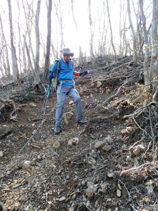 ![]() 有間山稜は近そうで遠い(^^; ![]() 8:40 ザレた下りは慎重に ![]() 8:55 この付近の緩やかで広い尾根は、前回の残雪時は、ルートが判り辛かった 9:10 黒茂山通過。