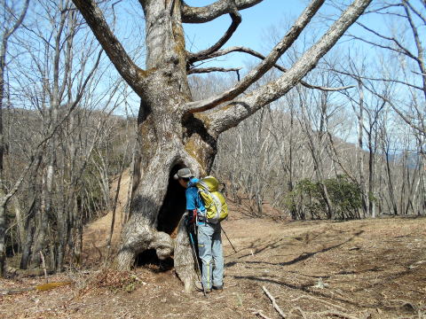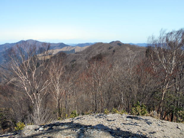 6:50 岩茸石分岐通過。 ![]() 岩茸石 ここからは権次入峠まで急な階段道だ。 ![]() アセビ 7:10 権次入峠分岐通過。 ![]() 7:25−40 棒ノ嶺(969m) 大休止・パン。 奥多摩方面からも合流する広い山頂には東屋やベンチがあるが、本日我らの貸切。 山頂の桜の木は、まだ硬い蕾だった。 ![]() 山頂は大展望! 昨年冬歩いた山々が連なる。 ![]() 山頂より望む大持山(奥左)、武甲山(奥中央)、武川岳(奥右) ※ズームで撮影 棒ノ嶺から日向沢ノ峰まで樹林の中、いくつものピークを越えて行く。 どのピークへも一旦下り、登り返す。 前回逆行時も、この区間が凄く長く感じたが、今回はいかに(^^; 8:00 槇ノ尾山(945m)通過。 ![]() 8:28 無名ピーク通過。 8:34 長尾丸山(958.4m)通過。