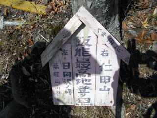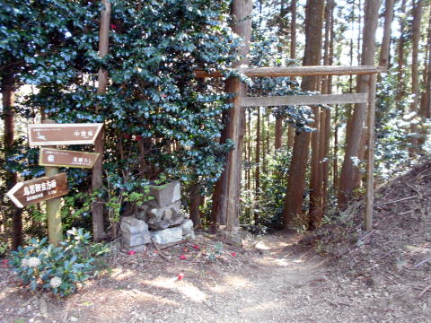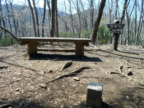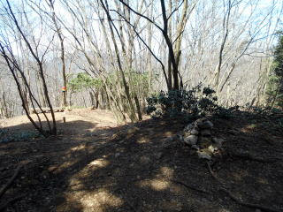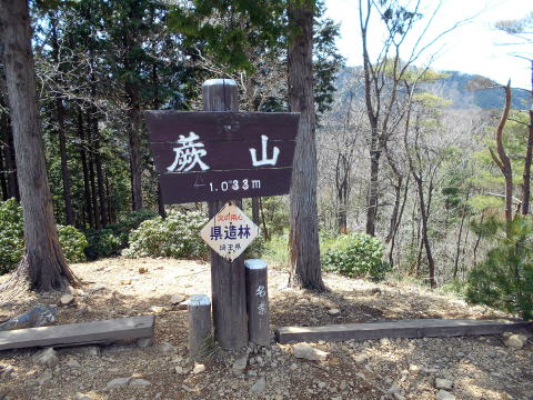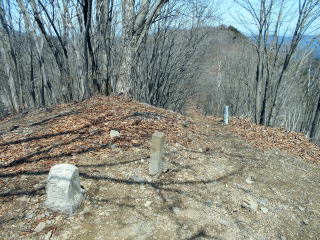 12:20 橋小屋ノ頭(1163m)分岐通過。 ![]() ここからはザレぎみの急坂下り。 12:35 逆川乗越通過。車道を横切る。 ![]() 蕨山へは広い道を緩やかに登り返す 12:50 登山道から右手に逸れた蕨山最高点(1044m)に寄って行く。
