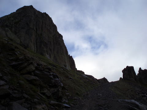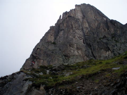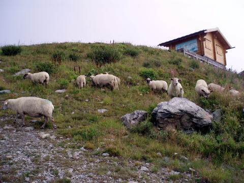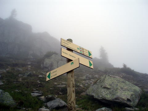 プランプラ 10:15〜12:00 ブレヴァン展望台 (標高2000m〜2525m) 現地係員Sさんとホテルで待合せ。 ホテル傍の美味しいパン屋さんで昼食用のサンドウィッチを仕入れ、徒歩にてゴンドラ 乗り場へ。(ゴンドラ&ロープウェイ代:大人往復@20ユーロ) ![]() ↑現地係員Sさん ↓エギュイ・デュ・ミディ ↓モンブラン ![]() ゴンドラ乗り場前より望む 10:10 ゴンドラに乗りプランプラ着。 10:15 プランプラ出発。 上がってくるにつれてお天気が悪くなってきた(^^; ![]() 放牧されている羊たち ![]() ↑標識はこんなかんじでわかりやすい 現地係員Sさんの案内で、のんびりお散歩モードであ〜る。 道は車が通れそうなほど広く、緩やかだ。 ![]() ガスっていて遠景は望めないが、登山道脇の岩峰を見ながら歩くだけでも、日本では お目にかかれない景観なので新鮮だ。 クライマーなら、取り付きたくなるところだらけ。 見た目には岩がしっかりしていそうなので、手ほどきを受けて岩登りをしてみたい衝動 にかられる。 ![]() ↑ クライマーが見えるかな〜(^^) 時折ガスがきれて青空ものぞくが・・・。 ![]() にわか雨が降ってきたりで、カッパの上だけ着て傘をさす。 やがて分岐が現れた。 ![]() 12:00 分岐を過ぎ、ほどなくしてブレヴァン展望台に到着。 モンブラン山塊を一望のもとに見渡せる、アルプスで最も美しい見晴台のひとつといわ れているが、残念ながら展望なし(; ;) ![]() せっかくなので、買ってきたサンドウィッチを食べ昼食とし、12:25下山する。 ![]() ↑オオツノのダンナだぁ〜(^^)♪ |