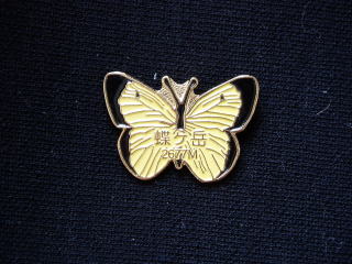 | 後 記 | 横尾〜蝶ヶ岳コースはペンキ印が明瞭だった。 徳沢〜蝶ヶ岳コースは、ペンキ印が薄く、間隔も広めで注意を要する。 ハイジの感想としては、周遊する場合は、登りを横尾コース、下りを徳沢コースに したほうが楽に思われる。 暫くテント泊山行をしていなかったので、ちー隊長に出発前から【ひーひー疲れる ほど歩き応えある山行した〜い♪】とノタマッテいたハイジであるが、願いが叶い 全身心地よい?疲労感に覆われた??日数以上に充実した山行となった。 技術は別として体力だけなら、穂高を登った方がはるかに楽だったと思う(^^; おまけの蝶ヶ岳バッチ♪ |