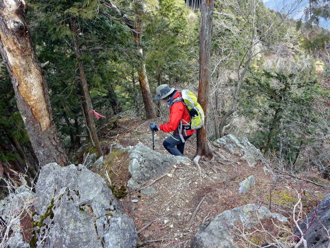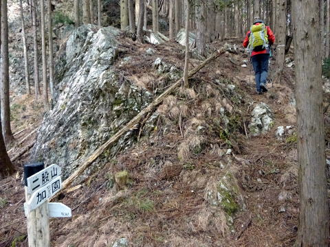 10:35 鞍部通過。北峰を巻く道もある。北峰直下はロープがある岩場の急登