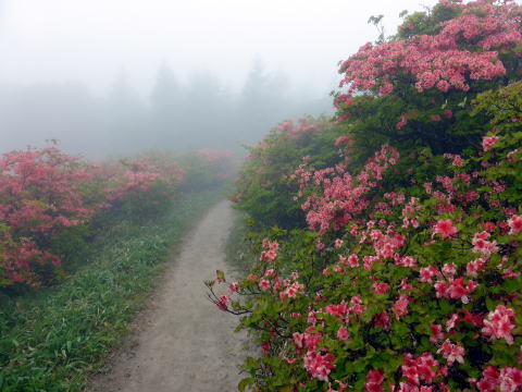 | 概 略 | 三百名山巡り二日目は、山頂まで最短の赤坂峠から山頂〜日の出岩を往復する。 お天気は雨予報であり、雨具上下を着て出発したが、ラッキーなことに霧で済んだ。 遅いかと思われたツツジも、3合目〜4合目間が見頃であった! 登山道&道標も整備され危険箇所なし。 現地情報HPはここをクリック |