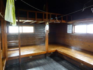 9:15―20 日の出岩(小休止) ![]() 9:25 山頂通過。 9:35−50 しゃくなげ山荘(大休止・パン) 山頂含め貸切だ! この日は11回目の結婚記念日♪ ちー隊長が山荘内ノートに記念の記帳をする(^^)
