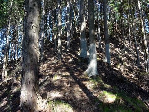 8:57 雑木林の急坂を、テープに導かれ九十九折に行く