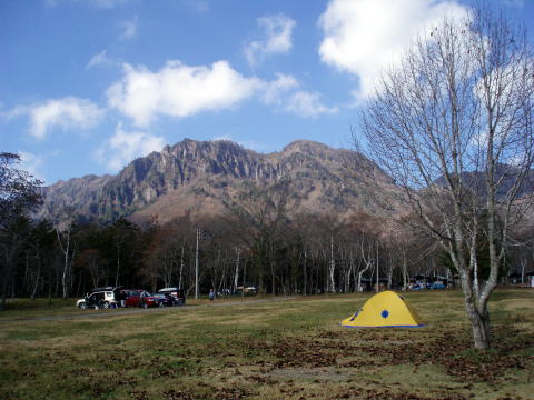 戸隠キャンプ場をベースとし、北信五岳の飯縄山と黒姫山を登ろうと出かけたが、 二日目朝ガスガスのお天気に挫け、黒姫山行は中止する(^^; アプローチ:大宮駅6:50発(あさま501号)〜8:04長野駅下車。 長野駅8:33発(路線バス)〜9:47戸隠キャンプ場着。 管理棟にて受付を済ませテント設営後、再びバスに乗り登山口へ。 ![]() 戸隠キャンプ場と戸隠山&我が家 |