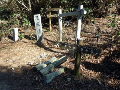 何のことはなく、数分で車道と合流した(^^; 車道を渡り、今度こそ足尾山への本登山道だ。 数分で男坂・女坂の分岐板が現れた。 私達は、左側の男坂を選ぶ。距離は短いが名の通り急坂だった。 坂を終えると再び車道を渡り、足尾山頂へ。 11:35 足尾山(627m)着。 大休止(カップ麺&おにぎり) ![]() 山頂にある足尾神社(後方・加波山) ![]() 足尾山より望む浅間山(中央付近・見えるかなぁ〜?) ↓日光白根山 ↓男体山 ![]() 足尾山より望む 12:00 足尾山出発。 ↓15分ほどで車道に下り着く。 ![]() ここからきのこ山までは、上道標の通り車道歩きだ。 途中、ハング・パラグライダー場がある。 ↓女体山 ↓男体山 ![]() ハング・パラグライダー場付近より望む筑波山 30分ほどで車道を離れ左に入り、きのこ山へ。 12:45 きのこ山(528m) 東屋があるが展望なし。写真を撮り、来た道を戻る。 ![]() 案内板によると、きのこ山は本当にきのこが収穫できる山だそうだ(^^) 車道反対側の道標に従い、パラグライダー場の脇を右へ入り、麓の集落へ向け下る。 ![]() 13:20 林道通過。ここからアスファルトの道を歩き、駐車場へ戻る。 ↓加波山 ↓丸山 ↓足尾山 ↓キノコ山