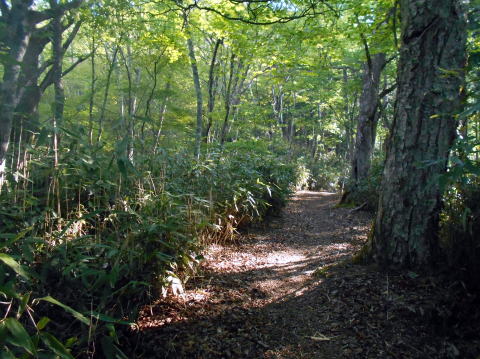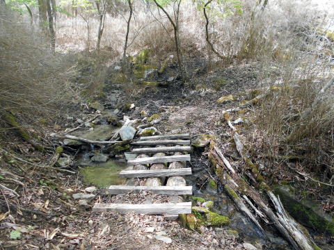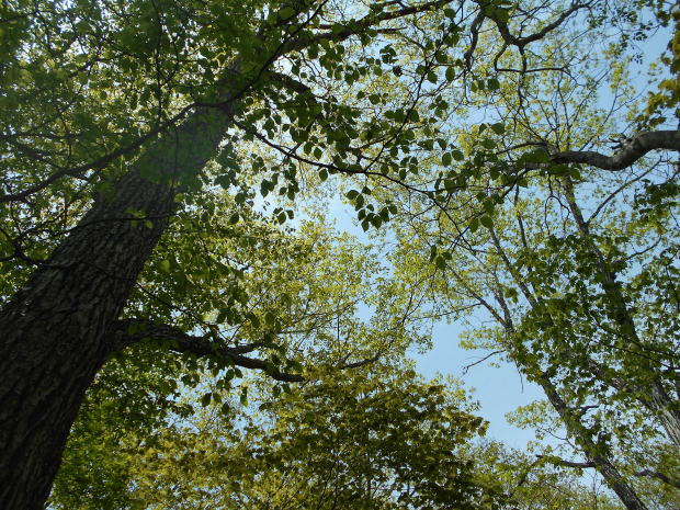 ![]() 水場は小屋から2分程下る ![]() 12:38 ミズナラの原生林は新緑が眩いほどに美しく、そこに居るだけで幸せだ(^^) 12:45 一休坂分岐通過。馬止方面へ中段林道を行く。中島川橋までは後4.4km。 ![]() ![]() 12:51 良く整備された緩やかな道が延々と続くが、車道を歩くより大分マシだ♪ ![]() 森の精気をたっぷり頂き、体の隅々まで浄化されていくようだ〜♪ 13:45 馬止分岐通過。予想通り小屋から誰にも合わず・・・(^^;