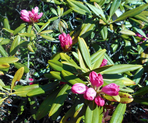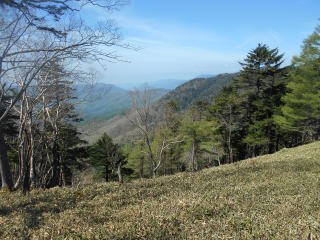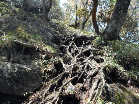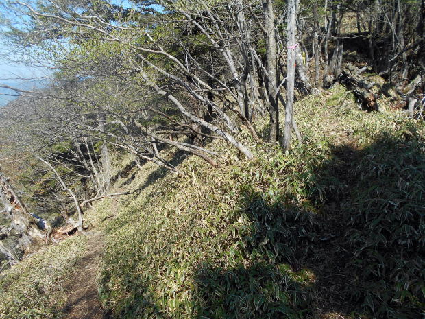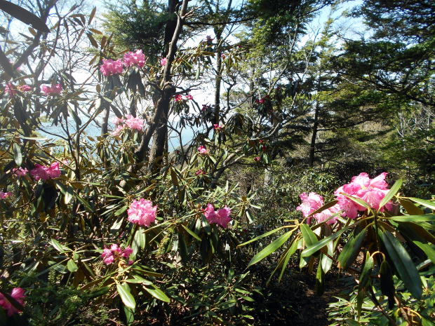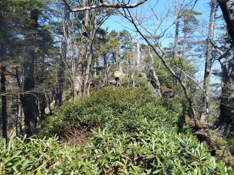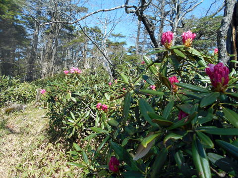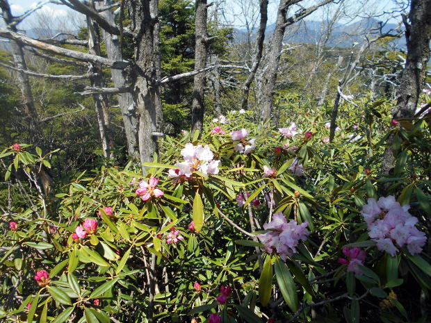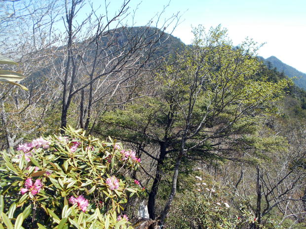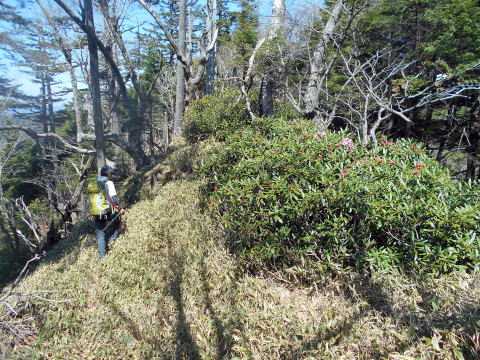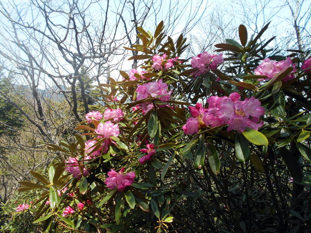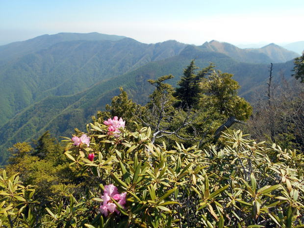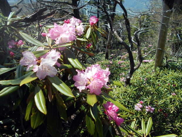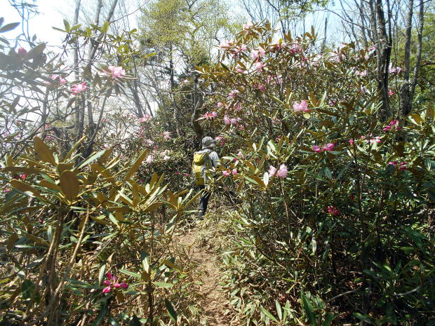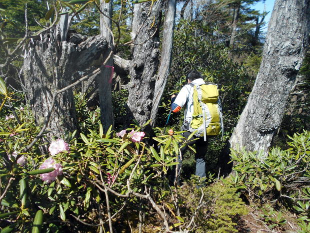 ![]() 唐松尾山から縦走路へ戻り、一旦大きく下る ![]() 10:01 下った分登り返す ![]() 10:03 唐松尾山を振り返る。 ![]() ピークが近づくと、両側石楠花が花盛り♪ 上手く撮影できなかったが、この付近が今山行で一番石楠花が多かった所だ。 稜線両側、斜面下方まで一面に石楠花の大群落! こんなに多くの咲いている石楠花を山中で見たのは、二人共初めてであ〜る(^^) 瑞牆山で最盛期の石楠花を見たことはあったが、それを遥かに凌ぐものだ! 時期的にはまだ早いだろうと期待していなかったので、思いがけずいい頃に出合えて ラッキーだ☆ まだ蕾も多く、あと10日位は楽しめるのではないだろうか♪ ![]() ![]() ![]() ![]() ![]() ![]() 10:10 石楠花ピーク(勝手に命名)通過。 ![]() ![]()
