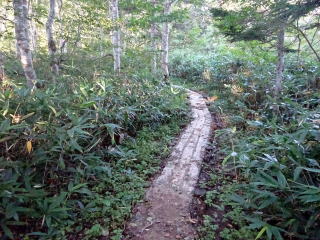 7:21 オヤマ沢田代(小湿原)通過。前方に小至仏山が見える♪