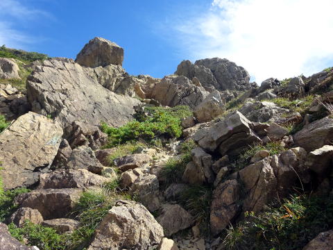 10:44 ロープの架かる岩場通過