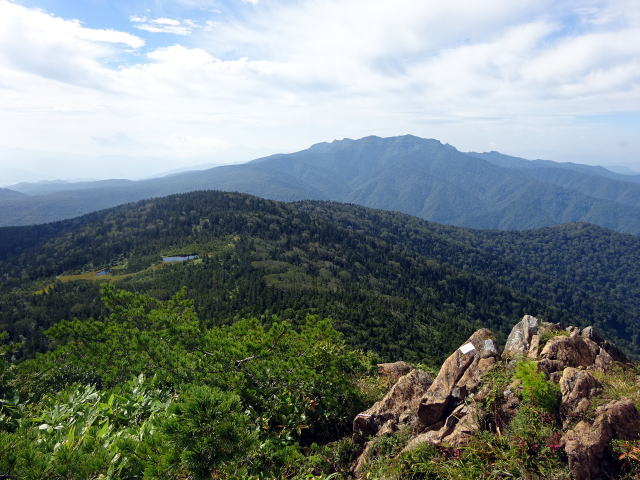 笠ヶ岳から望む上州武尊山と片藤沼