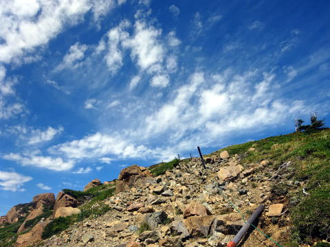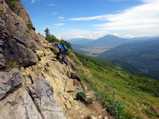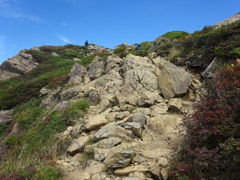 岩道の急坂を行く