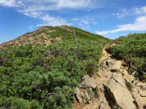 悪沢岳からは鞍部まで標高差で130m程、下り基調の緩やかな道を行く