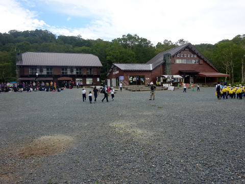 鳩待峠広場は小学生の団体で大賑わい