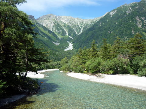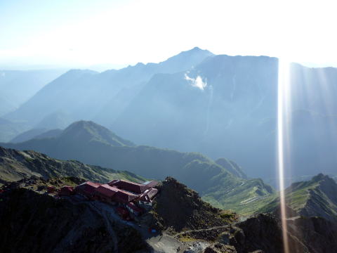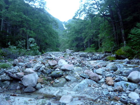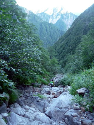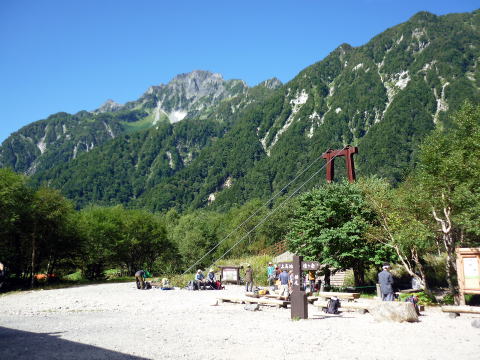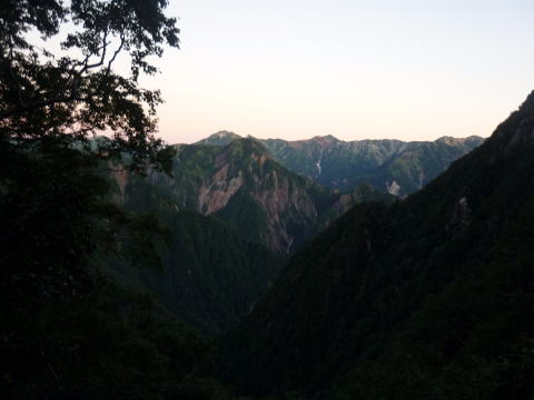 ヒュッテ大槍 5:55〜7:15 大曲 7:25〜9:20 横尾 9:30〜10:20 徳沢 10:40〜 12:15 上高地アルペンホテル(入浴後帰宅) 5:25 起床。 行動食のパンが大分余っていたので、朝食はとらず、身支度を整える。 5:55 出発。 ![]() ヒュッテ大槍より望む富士山と南アルプス ↓前穂 ↓南岳 ![]() ヒュッテ大槍より望む ![]() ヒュッテ大槍より望む 今日もいいお天気♪ 3日目も時間をフルに使えたら、表銀座縦走路から槍ヶ岳を眺めながら中房温泉に行きた かったが、ちー隊長の仕事の関係で帰宅時間を急ぐため、最短コースの上高地へ下る。 ![]() 登山道を塞ぐ雷鳥親子(^^) 6:15 坊主岩小屋分岐通過。 6:45 天狗原分岐通過。 ![]() 7:15−25 大曲(小休止・パン) 7:45 ババ平通過。 ![]() 8:10 槍沢ロッジ通過。 ![]() 槍沢ロッジ前より望む槍ヶ岳 9:20−30 横尾(小休止・パン) ![]() 10:20−40 徳沢(大休止・徳澤園食堂にて、カレー&そば) 11:30 明神通過。 ![]() 河童橋より望む【お約束】の風景♪ 12:15 上高地アルペンホテル(入浴¥500 シャンプー&リンス、ドライヤーあり) |