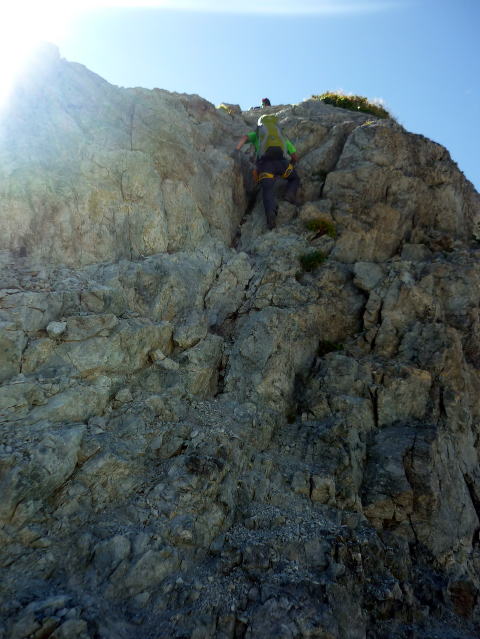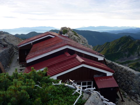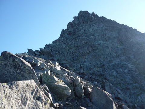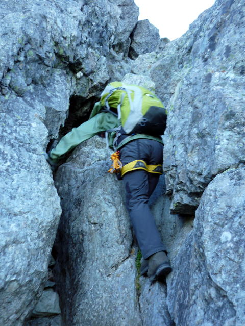 北鎌平へは、一旦下り登り返す。ザレ加減が緩み、これまでより歩きやすい。 ↓槍ヶ岳 ↓B氏 ↓ガイドさんパーティ 15:25−45 北鎌平(大休止・パン) お天気の崩れる心配もないのでゆっくりする。 順調に行けば、小一時間で山頂だ。 北鎌平からの景色も素晴らしい。格好のテン場だ! 独標直登パーティのお2人は、今夜ここでビバークされるとのこと。羨まし〜〜い♪ ちー隊長の水2L以上残っていたので、捨てるよりは・・・と思い声をかけ、お一人に引き 取っていただいた。 居合わせて再び写真を撮り合ったA氏は、【ああ、キタカマがもうすぐ終わっちゃう・・・】と、 名残惜しげ。その気持ち、お察しいたします! ![]() 北鎌平より望む槍ヶ岳 北鎌平からは、ザレた部分はなくなり、積み重なる岩の中を山頂へ向け行く。 今までに比べ、格段に歩きやすい。 ![]() 15:52 北鎌平とP15を見下ろす ↓P15 ↓独標 ![]() ついつい後ろを振り返る♪(^^) ![]() 勿論前にも進みます♪(^^) ↓大天井岳 ↓常念岳 ![]() 影槍ヶ岳〜♪(16:08) ![]() 16:09 北鎌尾根デ〜ス(^^)/ ![]() 16:32 下のチムニーを登るハイジ ![]() 上のチムニー前より望むヒュッテ大槍(赤丸部) いよいよ最後の難所?、有名な上のチムニー現る。 少し離れた所から写真を撮らなかったので、全景が判りづらいが、一歩目の足場が小柄な ハイジ(身長153cm)には高く、その状態で登るので、二歩目もスムーズにというわけには いかず、右側の岩に手掛かりを求めながら、左側の岩をお尻で踏ん張り、体勢を立て直しな がら登る(^^; なんとかザイル出してもらうことなくクリアー\(^o^)/ ![]() 上のチムニー(上部)の ちー隊長 本当にいよいよ山頂です。上のチムニーを終え、左側に白い木の杭が現れる。 その杭を過ぎて右側へ登っていくと、山頂にA氏の姿が見え、そして祠の脇に出た! 16:40−50 槍ヶ岳(小休止) 着きました〜〜〜\(^o^)/\(^o^)/ 大天井ヒュッテから12時間10分。頑張りました〜〜〜♪♪ 山頂に居合わせたお兄さんに、お祝の言葉をいただき、写真も撮っていただきました〜♪ ![]() \(^o^)/\(^o^)/ ハイジは5度目の槍ヶ岳山頂だったが、360°全部見えたのは初めてだ! 登頂の喜びに酔いしれていたいが、本日の宿は可能ならヒュッテ大槍に泊まりたく、山頂 から電話を入れる。(時間的にダメな場合は、槍ヶ岳山荘を考えていた) 夕食は少し遅くなるが、宿泊可能ということで、ヒュッテ大槍を目指しもうひと歩き。 槍ヶ岳山頂からは、山荘分岐まで下り渋滞にハマリながら・・・(^^; ↓笠ヶ岳 ![]() 17:15 槍ヶ岳山荘分岐通過。 ![]() 名残惜しく、振り返ってしまう槍ヶ岳♪ ヒュッテ大槍までも岩屑の道だが、一般路はこんなに歩きやすいのかと思う。 ![]() ![]() ヒュッテ大槍 17:50 ヒュッテ大槍着(泊) 一泊夕食付¥8,200 ![]() 割り振られた部屋も北鎌だった(^^)v 18:50 夕食。メインは鳥のソテー。 ワイン・デキャンタ(1L位?) ¥1500 ビール500ml¥700 ちー隊長と山行を振り返りながら、そして、ハイジの誕生日も祝いながら祝杯を重ねる♪♪ ![]() 20:10 消灯。(爆睡!) |