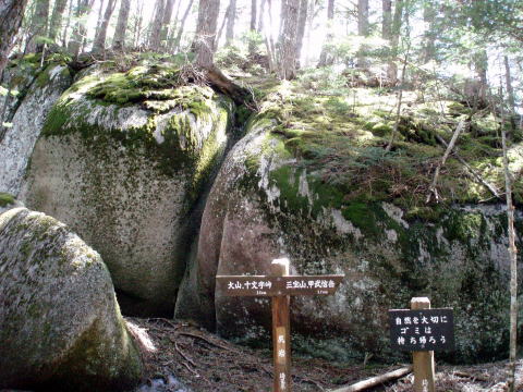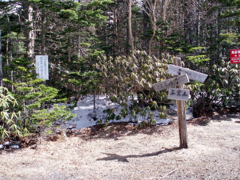 甲武信小屋 7:55〜8:50 三宝山 9:00〜11:55 十文字小屋 12:15〜13:35 毛木平P 6:00 起床。 6:30 朝食。 7:55 テン場出発。 残雪の登山道だが昨日の状況から、軽アイゼンを着けずに行く。 8:15 稜線分岐通過。 ![]() 時々メンバーの誰かが深くズボしたりしながら進む(^^;) 8:50−9:00 三宝山着。休憩。 ![]() 埼玉県最高峰・三宝山(2483m)山頂 ↓富士山(見えるかな?) ![]() 三宝山より望む甲武信岳↑ 9:40−55 尻岩着。休憩。 ![]() 尻岩 尻岩からも日陰には雪が残り、凍結箇所があるので注意を要する。 ![]() ![]() 武信白岩山(2288m) 10:30 武信白岩山の基部着。空身で岩場の山頂を往復する。 ![]() 武信白岩山(2288m)山頂 ↓三宝山 ![]() 武信白岩山より望む三宝山 10:45 武信白岩山の基部出発。 ![]() 足裏にやさしい道を行く♪ ![]() ![]() 11:55 十文字小屋着。(大休止) シャクナゲの時期には大賑わいであろうが、時期が早いため閑散としている。 日曜日にもかかわらず、ここまでの道中、誰にも会わない。 ![]() まだ固い蕾のシャクナゲ(十文字小屋付近にて) ![]() たくさん見かけたハシリドコロ 12:15 十文字小屋出発。 12:35 八丁の頭通過。 13:00−05 休憩。 13:20 一里観音菩薩通過。 ![]() ![]() 13:35 毛木平P着。増富の湯へ寄り汗を流す。(韮崎駅までT氏に送ってもらう) |