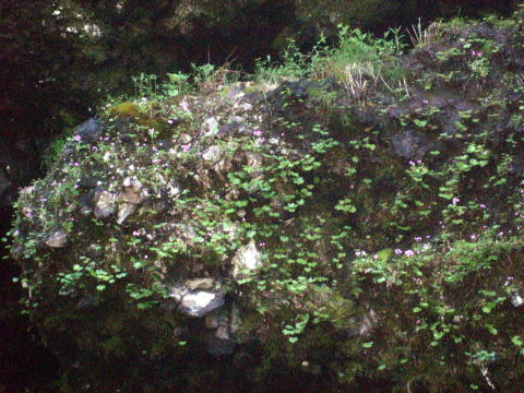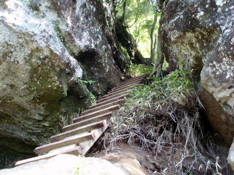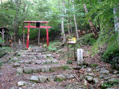銀山平公園P 5:45〜7:55 庚申山荘 8:10〜9:15 庚申山〜展望台 9:25〜10:20 猿田彦神社跡 10:30〜12:00 銀山平公園P 5:00 起床。前夜(といっても数時間前)のアルコールが残り気味??で冴えない 目覚めであ〜る。朝食と身支度を済ませ、5:45 出発。 かじか荘先の標識 かじか荘先の登山口標識を過ぎると、左側に未舗装の登山口駐車場がある。 二十数台駐車可能であろうか。すでに7割方駐車されている。 5:50 林道ゲート通過。ゲート手前にも数台分の駐車スペースがある。 一の鳥居までほぼ平坦な林道を行く。 6:50 一の鳥居通過。 ![]() ここから登山道となる。広めの緩やかな道が続く。沢音の心地よい道は乾いており 歩きやすい。森林浴を楽しみながら進む。夫婦蛙岩や鏡岩の奇岩もある。 7:50 猿田彦神社跡通過。お山巡りコース手前にクリンソウの群落を見る。 荒廃しているらしいお山巡りコースは使わず、庚申山荘へ。 ![]() 7:55 庚申山荘着。(大休止)行動食のパンを食べ給水。 ![]() 庚申山荘 8:10 庚申山荘出発。 まもなくクリンソウの見事な群落が現れる。 ![]() クリンソウの群落 鳥居をくぐると本格的な山道となり、傾斜が増す。やがて聳え立つ岩壁が現れる。 雫を滴らせている岩壁には、似つかわしくないユキワリソウが沢山咲いている。 ![]() 見づらいけれど、ピンク色のポチポチがユキワリソウです ![]() ユキワリソウ 道は更に斜度を増し、梯子や鎖が付けられて歩きにくい。 ![]() ![]() お山巡りコースと合流し、もうひと登り。右側についた踏み跡の先には岩壁が・・・。 そして、ついにコウシンソウとご対面♪ ユキワリソウが大方を占める岩壁の所々に、5mmほどの花を咲かせている。 コンパクトデジカメでスーパーマクロで撮影した画像は、予想通りピンボケ画像の オンパレード(^^;なんとか見れそうな数枚をUPしました。↓クリックで拡大 本道に戻り、次に現る右側の踏み跡の先の岩壁にも開花前?のそれらしき?? ちっちゃなものがありました。 9:15 庚申山山頂着。狭く展望がないので通過し、鋸山縦走路入口の展望台へ。 ![]() 9:17 展望台着。 ↓鋸山(1998m) ↓皇海山(2143.6m) ![]() 庚申山展望台より望む 男体山方面、山頂部は雲の中である。 鋸山縦走路へ目をやると、シャクナゲが咲いていた。 9:25 展望を楽しみ下山にかかる。(往路を戻る) コウシンソウポイントはギャラリーで賑わっていた。 段差の大きい急傾斜道を慎重に下る。 10:20−30 猿田彦神社跡着(小休止) この後登ってくる人たち毎に、コウシンソウの状況を訊かれた(^^) 縦縞模様が美しいカツラの木(葉っぱはハート形♪) 11:10 一の鳥居通過。 12:00 銀山平公園P着。 登山口駐車場は満車だったものの、5分しか違わないこちらの駐車場はガラガラで ある。銀山平公園キャンプ場の最奥に位置するため分り辛いのかもしれないが、 トイレも利用でき、お奨めであ〜る。 |