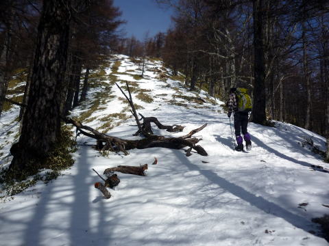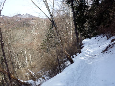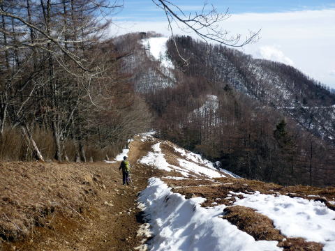 小袖P 8:30〜12:35 雲取山 13:25〜14:50 七ツ石小屋 15:10〜16:45 小袖P 8:30 小袖P出発。(トイレなし) ![]() 駐車場から数分の小袖登山口 ![]() 斜度は緩いが凍結ぎみの道が続く(^^; 9:30 水場通過。 9:50 堂所通過。本日のテーマは、1ピッチを長めにとる ![]() 10:10 じんわり高度を上げ、振り返ると富士山♪ 10:30−35 七ツ石小屋下分岐(小休止・パン) 凍結箇所が増してきたが、緩やかな登りなので慎重に足場を選び、つぼ足のまま頑張る。 尾根に出ると視界が開け、う・わ〜っ!! 彼方に南アルプスの山々がズラ〜っと! ハイジは雲取山から南アルプスが見えたのは初めてだ\(^o^)/ 肉眼では、笊ヶ岳までハッキリ見える♪ ![]() 南アルプスの山々 ![]() 飛竜山方面もカッコイイ♪ ![]() 雲取山が見えてきた♪ 11:10 ブナ坂分岐通過。 ![]() ![]() 緩やかな石尾根 ↓雲取山 ![]() ヘリポートは大雪原 11:40 奥多摩小屋通過。 ![]() 奥多摩小屋 ![]() 11:50 富田新道分岐通過 ![]() 小雲取山への登りは、つぼ足ではやや苦戦(^^; 12:15 小雲取山(脇)通過。 (ハイジは寄らなかったが)ちー隊長によると、小雲取山山頂は、登山道から右へ少し 逸れた樹林の中のピークで、標識無しとのことだ。 ↓避難小屋 ![]() 避難小屋が見えてきた♪ 12:35 雲取山(2017m)着。 写真では上手く撮れなかったが、浅間山も見える♪ 風が強いので山頂からの景色を目に焼き付け、避難小屋前で大休止(パン) ![]() ![]() 山頂より望む避難小屋 ![]() 避難小屋内部 相前後して到着した避難小屋に泊まるオジサマと、山の話で盛り上がる。 リタイアされて山復活されたそうで、若い頃の装備のお話や、最近の山道具の進化や、 時間が沢山できたことで叶う、長期の定着テント泊のこと等など、お話は尽きない(^^) さわやかなオジサマと、楽しいひと時だった♪ 13:25 避難小屋出発。 ↓七ツ石山 ![]() 避難小屋より望む石尾根と七ツ石山 ![]() 帰路は巻き道を行く 13:55 奥多摩小屋通過。 ↓七ツ石山 ![]() 14:15 ブナ坂分岐通過。 七ツ石山への登りは、所々膝下まで埋まるやや急な道だ。 14:35 七ツ石山(1757m)通過。 ![]() ハイジは初めての山頂だ(^^)v ↓雲取山 ![]() 七ツ石山より望む雲取山 ![]() 鷹ノ巣山への縦走路 14:50−15:10 七ツ石小屋(大休止・パン) 軽アイゼン(6本爪)装着。 ![]() こじんまりとかわいらしい七ツ石小屋 15:40 堂所通過。 15:55 水場通過。 16:45 小袖P着。 のめこい湯で汗を流し帰路に就く。 |