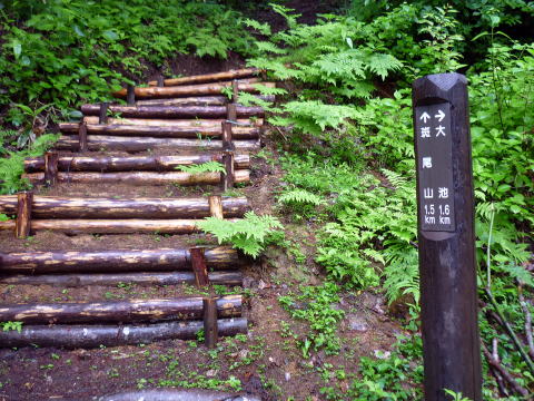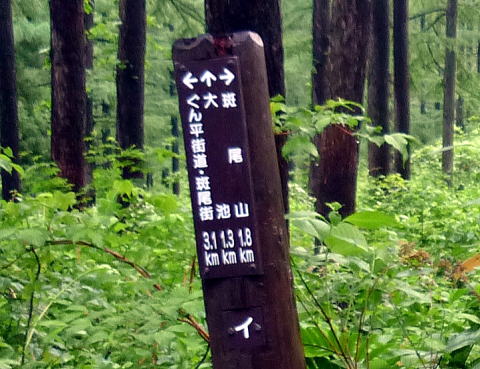 8:15 大池まで1.2km標柱分岐通過。 8:30 標柱を忠実に辿り、駐車場着。(誰にも会わない山だった) |