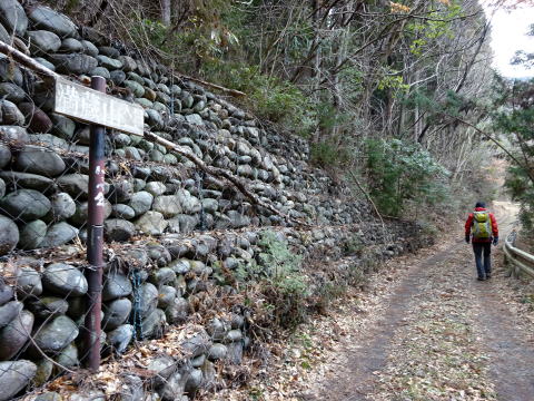 杉林の中、お墓の脇を通り緩やかな道を行く
