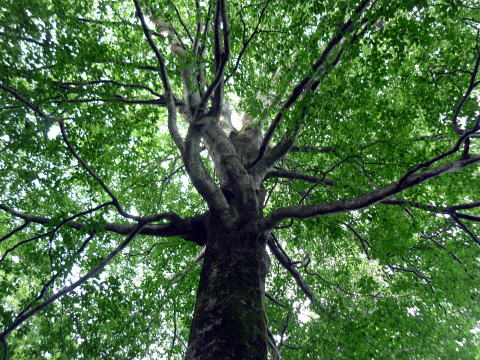 ![]() 避難小屋前のブナの大木 避難小屋から山頂までは、やや急な道を行く。 ![]() 7:43 樹間より望む摩耶山 ![]() 8:05 六体地蔵通過。