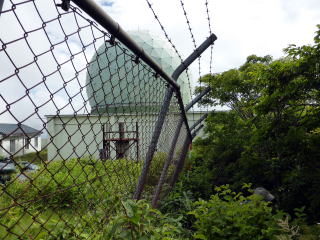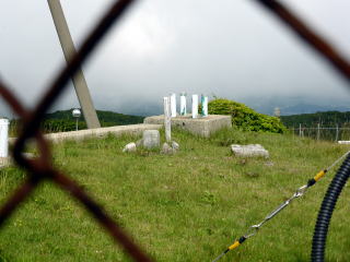![]() 14:25 斜度が緩むと、籔気味の道 登り着くと案内板と鳥居現る。鳥居を潜り左へわずかで山頂だ。 ![]() 14:30 大滝根山(1193m)着。(大休止) 山頂三角点は自衛隊施設の中にあり、事前申請しないと入れず、金網越しに撮影する。