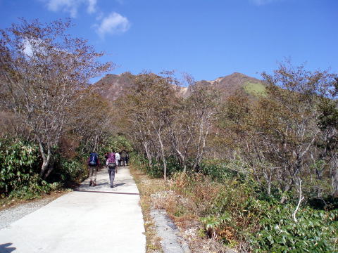 大黒屋 8:00〜8:45 避難小屋 9:00〜9:15 峰の茶屋 9:25〜10:10 山麓駅 6:00 起床。前夜呑み過ぎなかったおかげで、気持ちよく目覚める♪ 6:45 朝食。 8:00 皆で写真を撮り、大黒屋出発。 ![]() 今日も今のところいいお天気であるが、山歩きより宴会が主目的のためか?、最短 コースで下山する。 8:25 延命水の水場で喉を潤し通過。 ![]() 8:45 避難小屋着。 ![]() 樹間越しに望む隠居倉 9:00 避難小屋出発。 ![]() ↑避難小屋を望む 峰の茶屋へ向けて登り返すが、なんだか名残惜しい。だって、こんなにいい天気& まだこんな時間(^^; 9:15 峰の茶屋着。 ![]() 峰の茶屋 昨日に続き、今日も風がなく穏やかだ(^^) ↓朝日岳(1896m) ![]() 9:25 峰の茶屋出発。 ![]() 10:00 峠の茶屋通過。 福島在住のO氏は車で来ている。O氏の車は7人乗りなので、うわばみ隊はここで 皆と別れ、ロープウェイ山麓駅バス停へ向かう。 10:10 ロープウェイ山麓駅着。 紅葉のピークは終わり、月曜日だというのに人だらけ。 那須塩原駅行きのバスは、10:00に発車したばかりだった(^^; バスを待つ間、山の方はあっという間に雲の中見えなくなった。早く下りてきて正解! 10:35発 黒磯駅行きのバスに乗り帰路に就く。 |