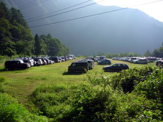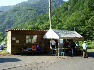 東海フォレストの始発バスは調べた所、8:00である。 そのつもりでのんびり支度をしていたが、6:00過ぎに発着所前はすでに人の列が?? ちー隊長が漏れ聞いた所、臨時便が出るらしいということで、我らも7:00前に並び始める。 7:45 結果第2便の臨時バスに乗ることが出来た。(定員28名)1人¥3,000- このバス代は、受領券が渡され、系列の山小屋で宿泊代の一部に充てることが出来る。 8:45 椹島着(トイレ&水場あり)