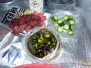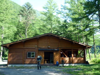15:50 千枚小屋着。(テント泊・1人¥600) 小屋は中も外も、多くの登山者で大賑わいだ! 漏れ聞く所に寄ると、この日の小屋の宿泊者は120人(@ @;) 小屋泊のオジサマに、テント泊はイイね♪と言われる。 ![]() 今シーズン建て替えられ 7/21オープンしたばかりの千枚小屋 テン場は、小屋からトイレ棟へ向かい、更に奥の樹林の中にある。(小屋から5分弱) 既に半分ほど張られていた。 我らは最奥部の一段低いスペースに張る。 水場は小屋前と、トイレ棟前に設けられている。 16:45 小屋前デッキで、ビール(一番搾り)で乾杯♪(500ml/¥800、350ml/¥500) 小屋前から見える富士山は生憎雲の中だが、笊ヶ岳を見ながら至福のひととき(~ ~)♪ とりあえず、ビールを飲まないと〜(^^) テン場で飲むため、もう1本ずつロング缶購入。 17:40 夕食(スパゲティ・ペペチ)