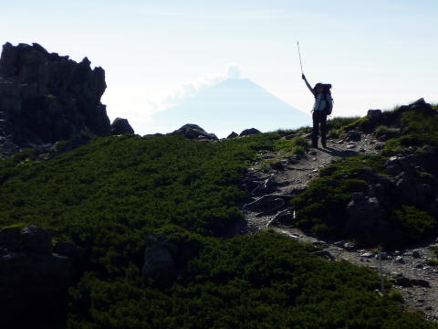 9:40−50 前岳分岐。ザックをデポし山頂往復(空身は羽根が生えたよう♪)