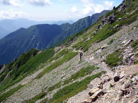 赤石岳避難小屋分岐より望む百間洞方面の縦走路