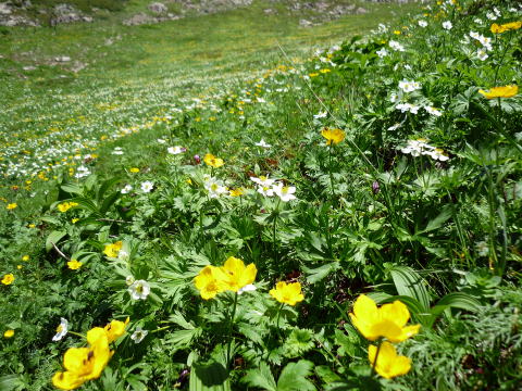 主にハクサンイチゲ(白)とミヤマキンポウゲ&シナノキンバイ(黄)で構成されている