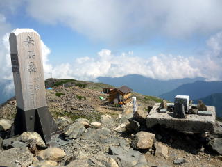 赤石岳(3120m) 山頂 山頂より望む赤石岳避難小屋
