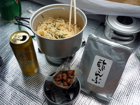 テン泊者も、小屋の食事だけ頼む事もできたが、食材&つまみ共余分に持っていたので、荷が