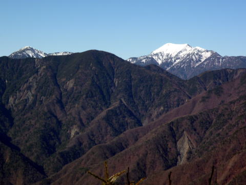 随身門への階段を上り返す。 ![]() 門が近づいてくると ![]() 随身門を額縁に見立てた富士山♪(^^) 遥拝広場から見える富士山をはじめとした景色は壮観だ! ↓愛鷹山 ↓駿河湾 ![]() 赤矢印は金峰山・五丈岩 ![]() 遥拝広場から荷揚げ用リフトの後ろを過ぎると、唐松林の緩やかな道から徐々に急坂 となり、登山道らしくなった。 ![]() 10:20 七面山(写真を撮り通過) 周りは木に覆われ展望なし。 ![]() 10:40 希望峰着。(大休止・パン&コーヒー) 八紘嶺への縦走路途中のピークである希望峰。「希望峰」なんて素敵な名前でしょう♪♪ 狭いながらも西側は大きく開け、白く輝く南アルプスの山々を見ることができる。 七面山から片道20分くらいなので、視界が得られそうならぜひ寄って行くべきだ。
