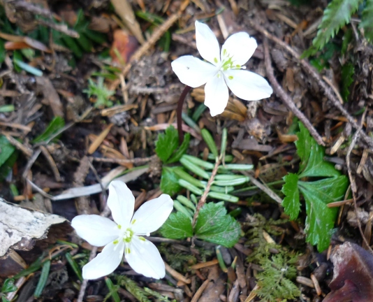 登山口周辺と沢沿いのルート脇は、ニリンソウが沢山咲いている。
