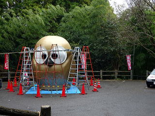 お化粧直し中の大フクロウは、台座から降ろされて小駐車場に置かれていた