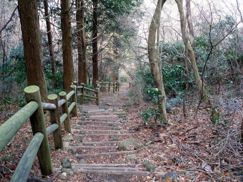 筑波山神社 8:25〜9:35 弁慶茶屋跡 9:40〜10:05 山頂(女体山) 10:10〜 11:25 薬王院 12:25〜13:00 中腹道路 13:05〜14:00 自然研究路南東屋 14:05〜14:45 中ノ茶屋跡 14:50〜15:15 筑波山神社 S子ちゃんをピックアップし登山口駐車場へ。 トイレと靴洗い場まで備えた広い市営第一駐車場は、以前は無料だったのが有料 (@500/日)となっていた。 8:20 身支度を整え、駐車場出発。 ハイジは2年ぶり、S子ちゃんは4年ぶりの筑波山であ〜る。 8:25 筑波山神社の鳥居をくぐる。神社から左へ行くとケーブルカーの宮脇駅。 私達は右へ進み、山道らしい白雲橋コース(弁慶茶屋跡経由山頂)へ。 8:40 つつじヶ丘登山口林道分岐通過。 杉林がメインの薄暗い道を行く。時間のせいか?登山道は空いている。 S子ちゃんとおしゃべりしながら、のんびり歩く♪ 9:35 弁慶茶屋跡着(小休止) 昨年のいつ頃だったか忘れてしまったが、ニュースで弁慶茶屋が閉店したことを 知ったので、どうなっているのかなぁ〜と思っていたがご覧の通り↓ ![]() 弁慶茶屋跡 茶屋跡は、霞ヶ浦方面の見晴らしが良い広場となっていた。 9:40 出発。 ここから女体山までは視界が開け、すぐに現る弁慶七戻り石をはじめ、奇岩が次々 とお目見えする楽しい道だ。ただし多くの人に良く踏まれた石道は滑りやすい。 10:05 女体山着。 晴れの土曜日&百名山の山頂とは思えぬほど人がいない!! ![]() 女体山(877m) 昨日の雨で空気が澄み、360°の展望を期待していたのだが、残念ながら遠景 は、富士山や日光連山がうっすらと見えるのみ(; ;) ![]() 山頂より望むつつじヶ丘P(中央奥は霞ヶ浦) ↓男体山(860m) ![]() (ケーブルカー駅)御幸ヶ原方面を望む 10:10 女体山頂出発。 昨年10月日光白根山以来の山歩きとなるS子ちゃんだが、適度に身体を鍛えてい るそうで足取りも軽い。 よって、筑波山を日に二回登ることになる薬王院へ下ることを提案してみる。 S子ちゃんからは、『そのつもりでいました〜♪』との頼もしいお返事が(^^) ![]() 土産物店が並ぶ御幸ヶ原と男体山 薬王院コースへは、御幸ヶ原から北側へ男体山の基部を一周する自然研究路を 行く。緩やかに下ったところで右に薬王院分岐の標識がある。 10:30 分岐通過。 ケーブルカーやロープウェイの架かる表コースの賑わいがうそのような、ひっそり として野鳥のさえずりが心地よい道だ。 裏側のいくつもあるコースは、地元筑波山リピーターに親しまれている。 薬王院コースの特徴は、途中急勾配の鬼階段があることだ(^^; 丹沢・大倉尾根とは短くて比べ物にならないが、歩く人を無口にさせる・・・。 ![]() 鬼階段の一部 11:00 筑波山中腹一周道路を横断。 ここからは緩やかに下る道を行く。 11:25 薬王院着(大休止) お目当ての梅の大木へ直行する♪ 暖冬なので満開か?と予想していたのだが、なんと二分咲きほどだった(^^; ![]() 梅の大木 小庭園を眺めながらお湯を沸かし、カップ麺の昼食。 の〜〜〜んびり寛ぎおしゃべりし、本当に大休止♪ でも、これから来た道を登り返し、駐車場へ下るのだ(^^; 12:25 薬王院出発。 13:00 中腹道路にて、鬼階段に備え小休止。 13:05 出発。 ここからは鬼階段を登りきるまで、おしゃべりはおあずけ(^^; S子ちゃんも過去に登ったことがあったので、各自のペースで淡々と一気に登る。 13:45 自然研究路分岐通過。男体山の基部を一周している道を私達は右側へ行く。 南西方面へ続いている道は、空気が澄んでいればなかなか眺めも素晴らしい。 先ほど休憩した薬王院が、眼下に小さく見える。 ![]() 自然研究路北側のツララ 14:00 自然研究路南側 東屋着(小休止) 14:05 出発。 14:15 御幸ヶ原分岐通過。ケーブルカー側のコースを筑波山神社へ向け下る。 階段状の急坂が続く道であ〜る。 14:45 中ノ茶屋跡着。(小休止) ここはケーブルカーの行き違いが見られるポイントだ。タイミング良く見ることがで きた(^^)v 14:50 出発。斜度の緩んだ道をもうひと下りだ。 15:15 筑波山神社着。 |